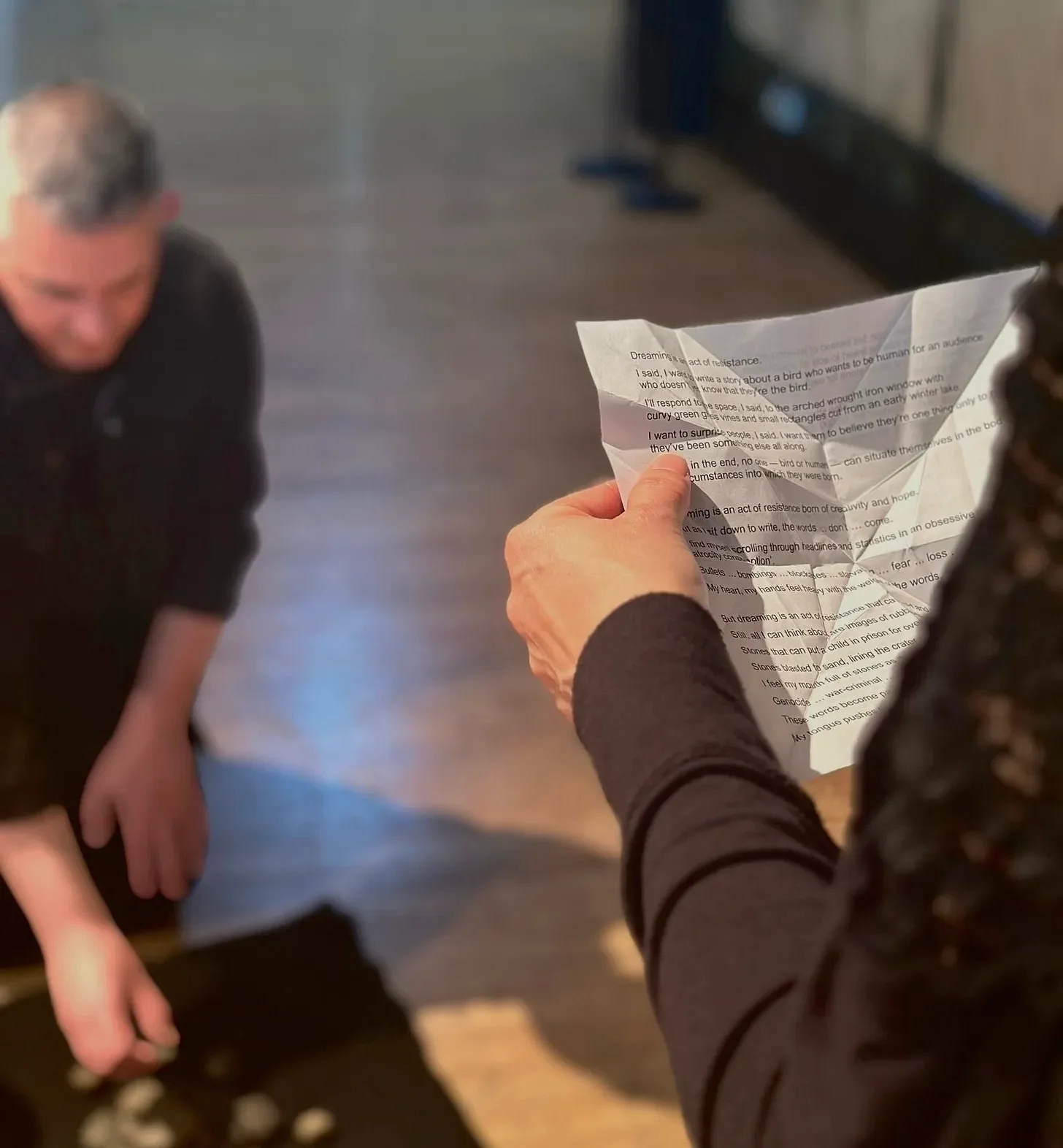 I wrote this piece after several failed attempts to write a story about a bird wanting to be human, a narrative that had arrived in my thoughts nearly fully formed. The failure to pull the story through my hands was frustrating but not new — I’d felt unable to create anything for many months. The weight of world events, and in particular the suffering in Gaza, pinned down my thoughts and trapped my arms against my sides. I felt unable to create, unable to dream. It was through a discussion with another artist that I was struck by the importance and urgency of dreaming/creating as an act of resistance. Suddenly, a different type of story flowed through my fingertips. The idea of speaking it aloud before an audience as an art performance was something new and rather terrifying for me. I resisted committing to it for weeks — until I finally acknowledged that the fear of performing was part what brought me to the workshop and exactly why I needed to do it. I felt proud of myself after I’d done it.